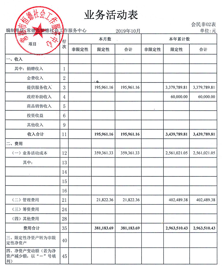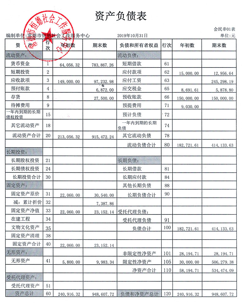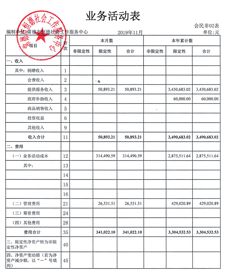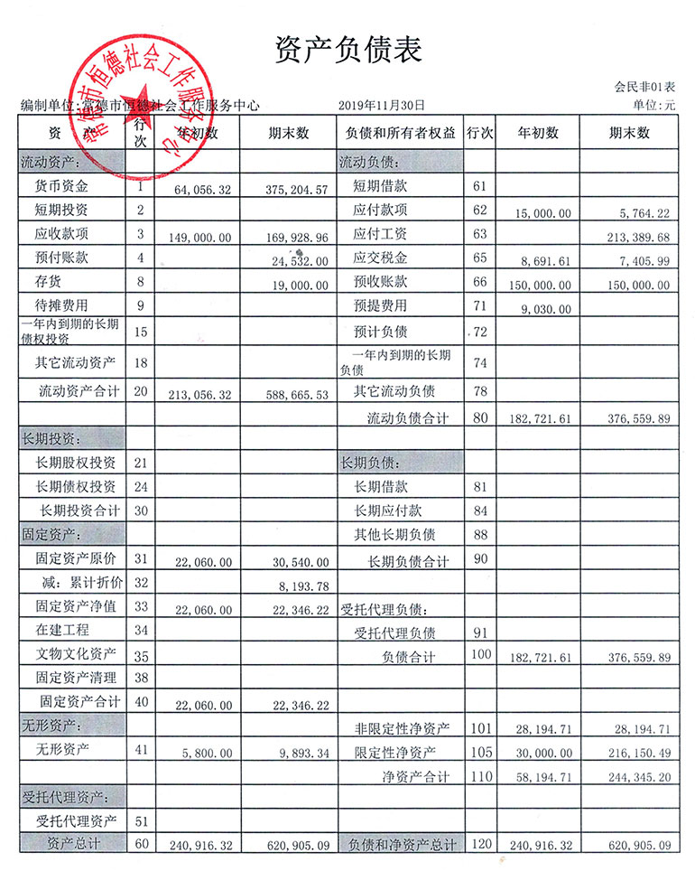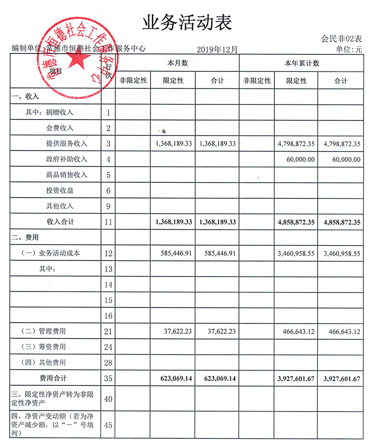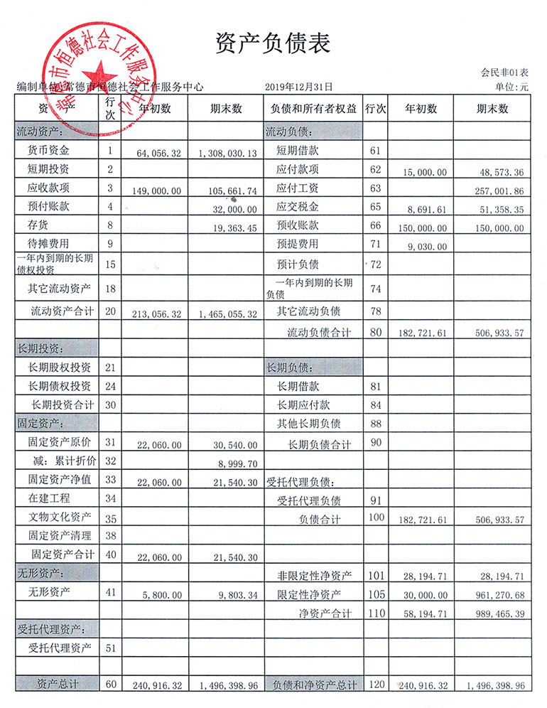 从2015年成立至今,常德市恒德社会工作服务中心已经走过了4个年头,我们严格执行《民办非企业单位财务制度》,按照民间非营利组织财务制度的规定,对外提供真实、完整的财务报告。现将常德恒德社工2019年第4季度财务报表进行公示。