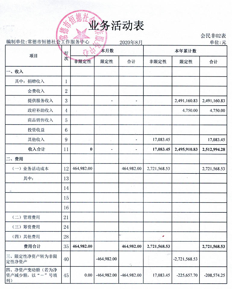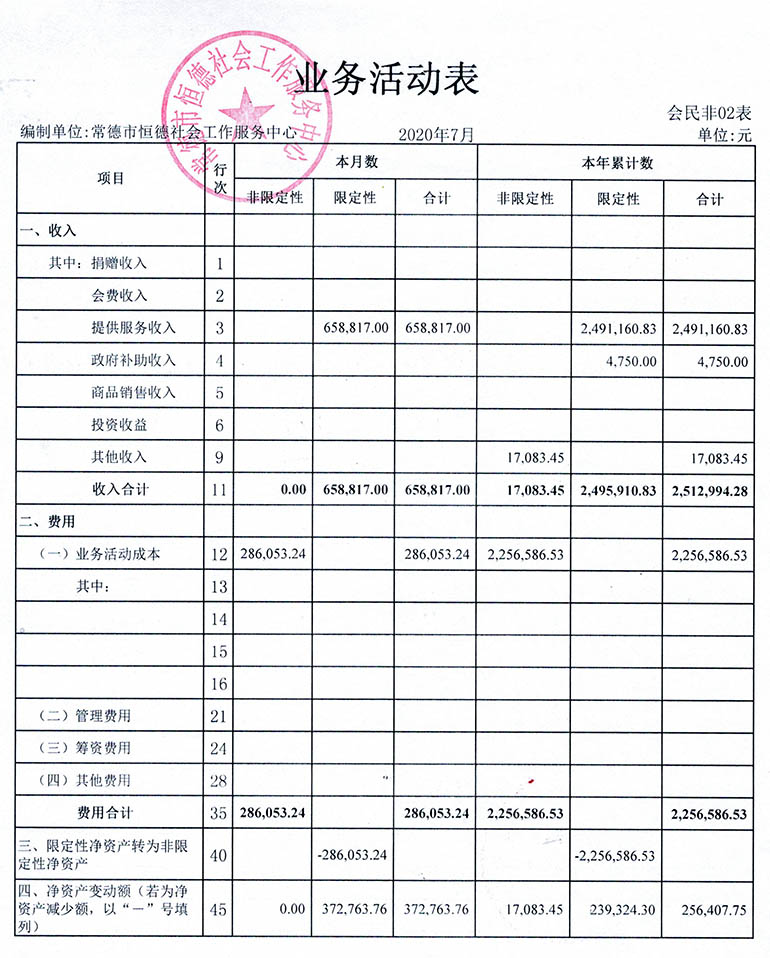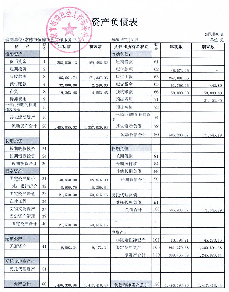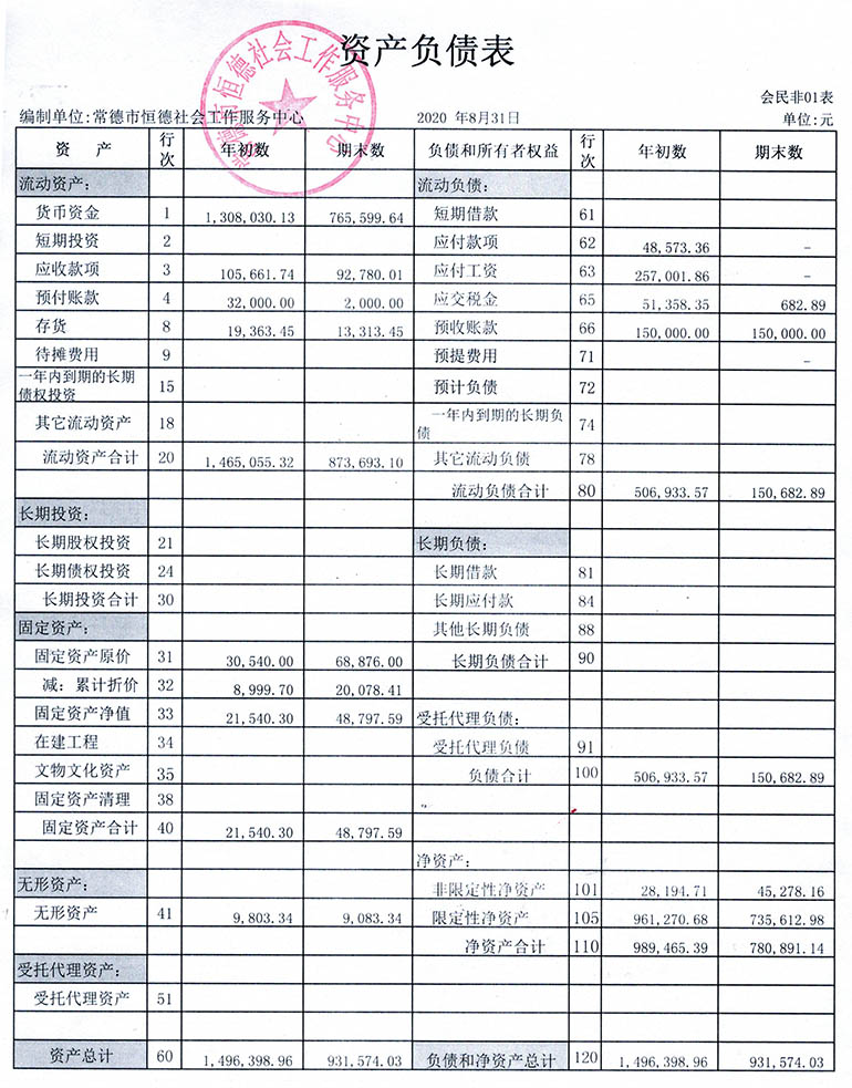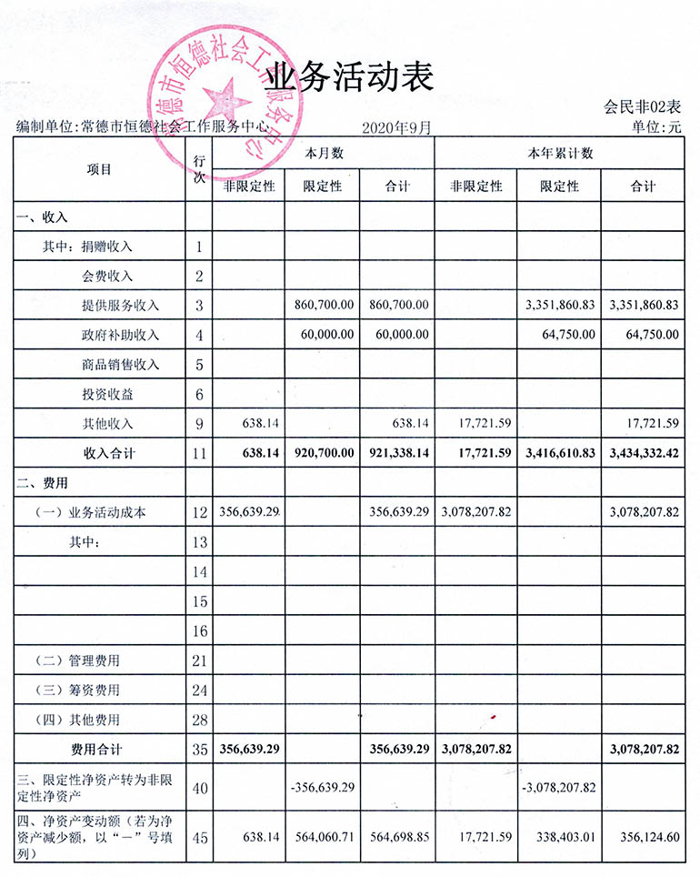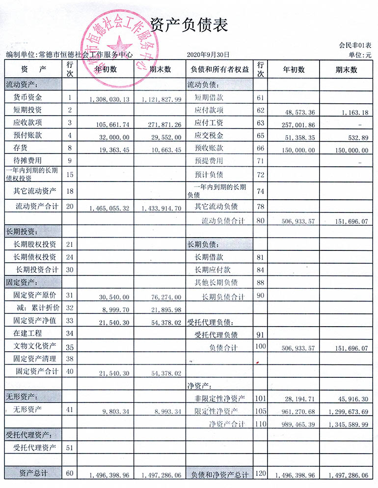 从2015年成立至今,常德市恒德社会工作服务中心已经走过了5个年头,我们严格执行《民办非企业单位财务制度》,按照民间非营利组织财务制度的规定,对外提供真实、完整的财务报告。现将常德市恒德社会工作服务中心2020年第3季度财务报表进行公示。
