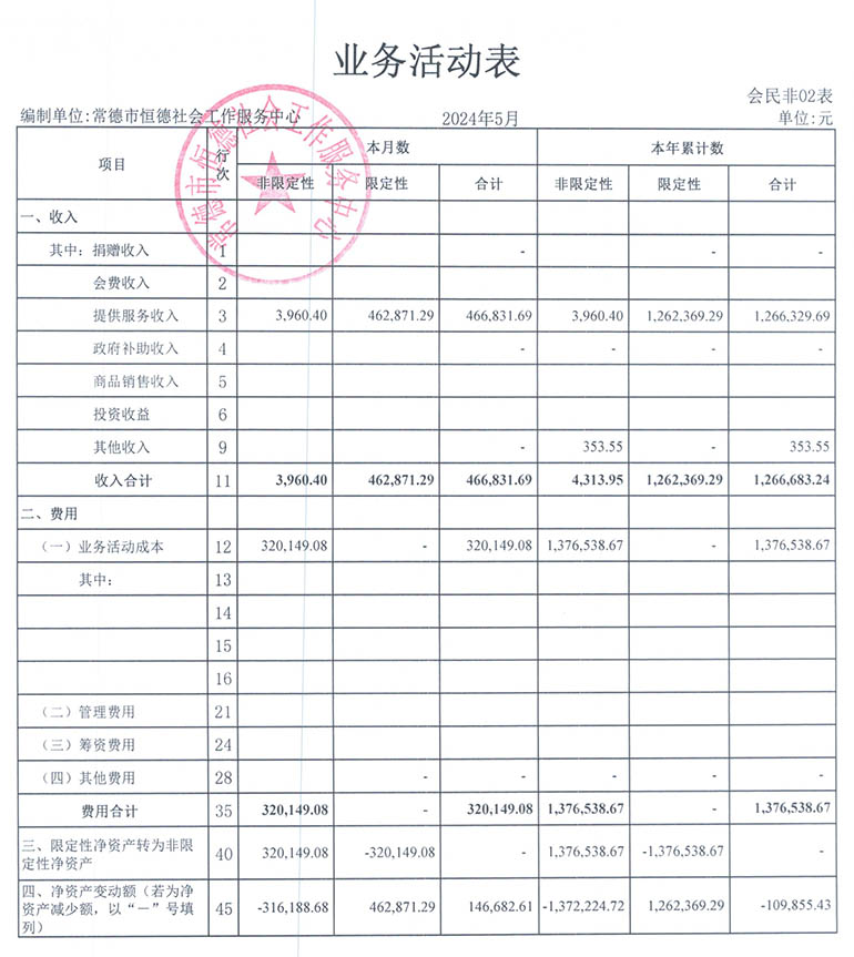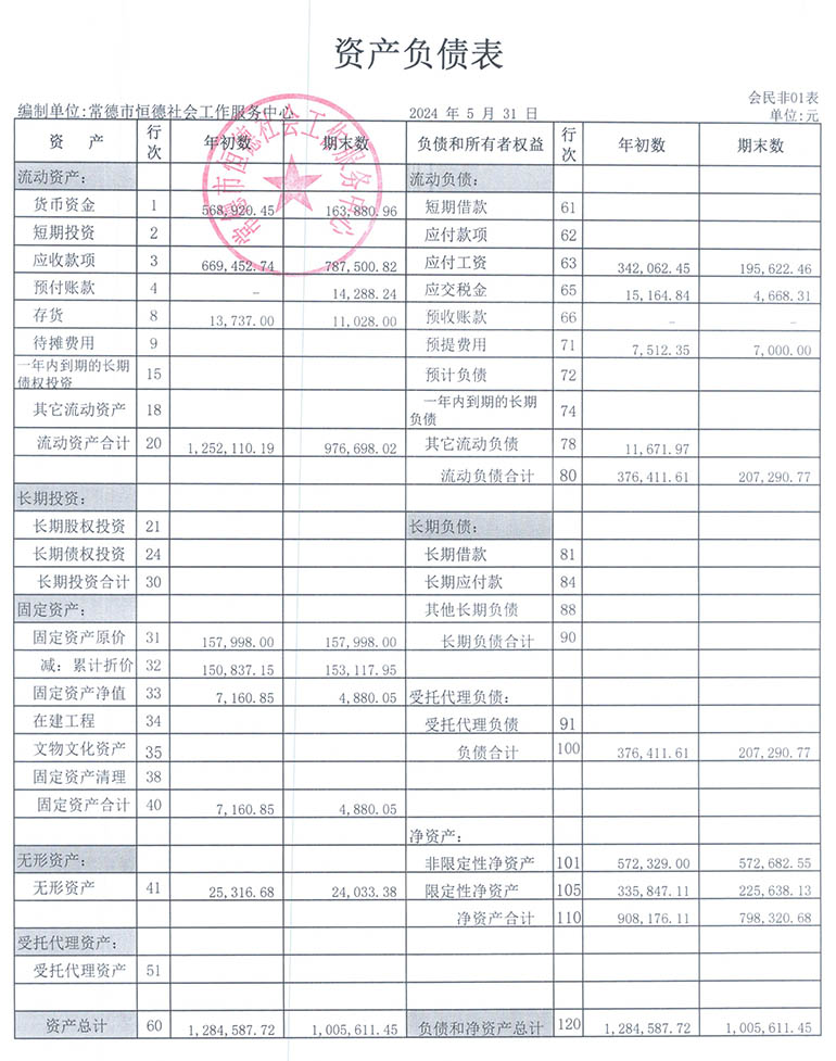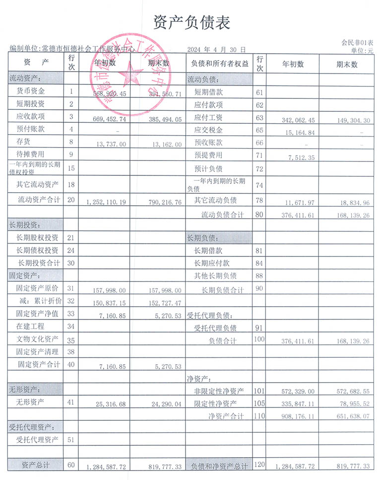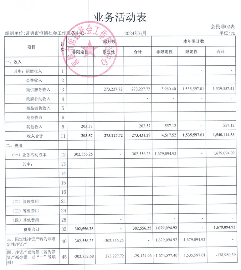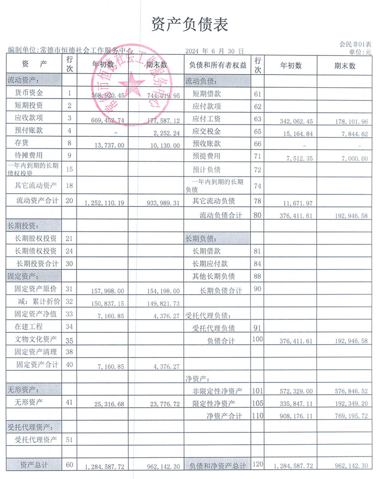 从2015年成立至今,常德市恒德社会工作服务中心已经走过了9个年头,我们严格执行《民办非企业单位财务制度》,按照民间非营利组织财务制度的规定,对外提供真实、完整的财务报告。现将常德恒德社工2024年第2季度财务报表进行公示。